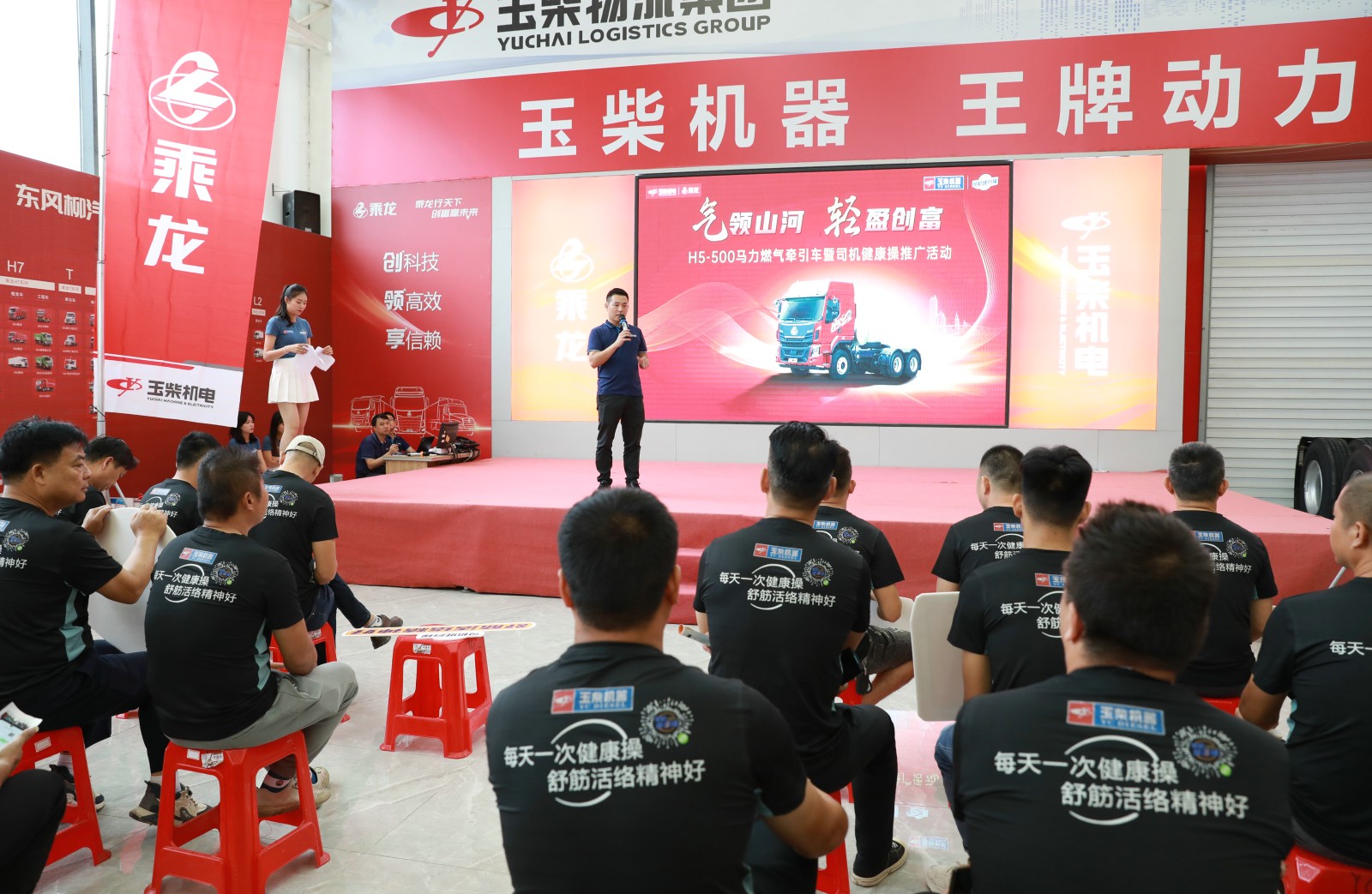 玉柴物流集團(tuán)聯(lián)合品牌公關(guān)部開展乘龍H5-500燃?xì)鉅恳囃茝V暨司機(jī)健康操推廣活動(dòng)