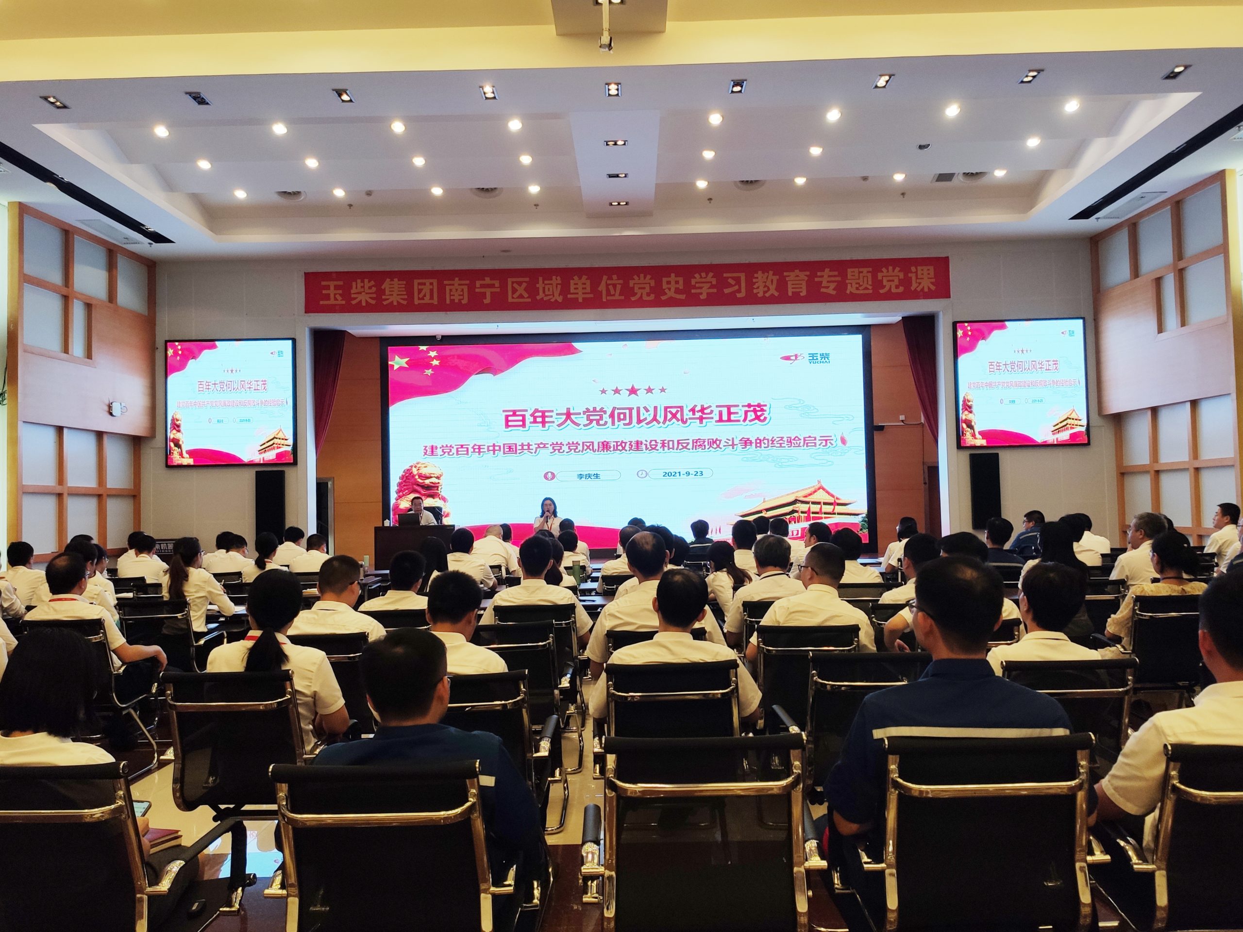 9月23日,玉柴集團紀委書記李慶生以“百年大黨何以風華正茂——建黨百年中國共產黨黨風廉政建設和反腐敗斗爭的經驗啟示”為題,為在南寧區域辦公的玉柴物流集團黨委、工程研究院黨委、新能源動力黨支部、玉柴專汽黨支部、玉林賓館黨支部等五個基層黨組織黨員講授了一堂別開生面的黨史學習教育專題黨課。